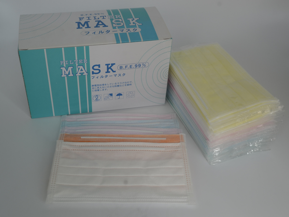 | 产品结构 | 由无纺布、过滤熔喷布、耳带、鼻夹经裁切、成型、熔接、包装而制成。 | ||